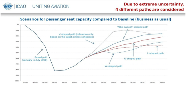 Berdasarkan studi yang dilakukan oleh ICAO tentang dampak Covid-19 pada ekonomi penerbangan secara global memang masih memerlukan waktu yang cukup panjang untuk pulihnya bisnis penerbangan. Tingkat ketidakpastian akan Covid-19 menyebabkan beberapa skenario dari tingkatan optimis sampai kepada kemungkinan terburuk mesti dipersiapkan. Tren dari studi yang dilakukan ICAO ini dapat diambil sebagai pelajaran yang berharga dalam bagaimana mempersiapkan strategi bertahan dari terpaan badai Covid-19 saat ini. Langkah bisnis yang konservatif dan fleksibel kiranya perlu untuk ditempuh pada saat seperti ini.